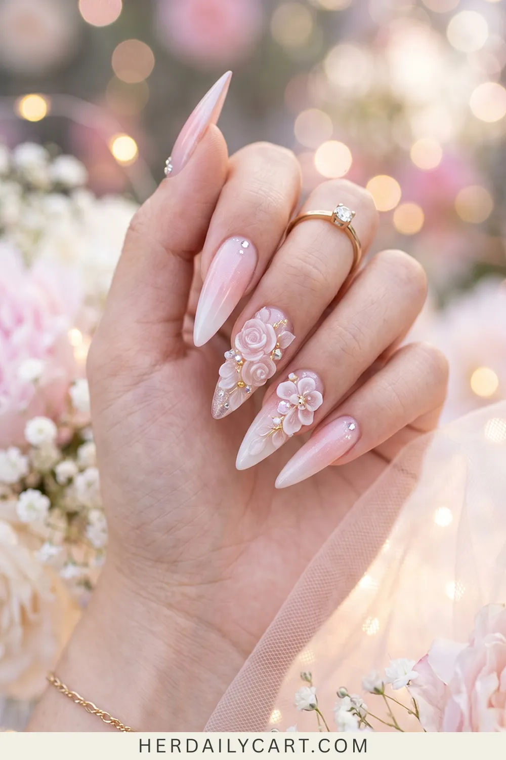 13. Romantic 3D Flower Nails for a Soft Glam Look