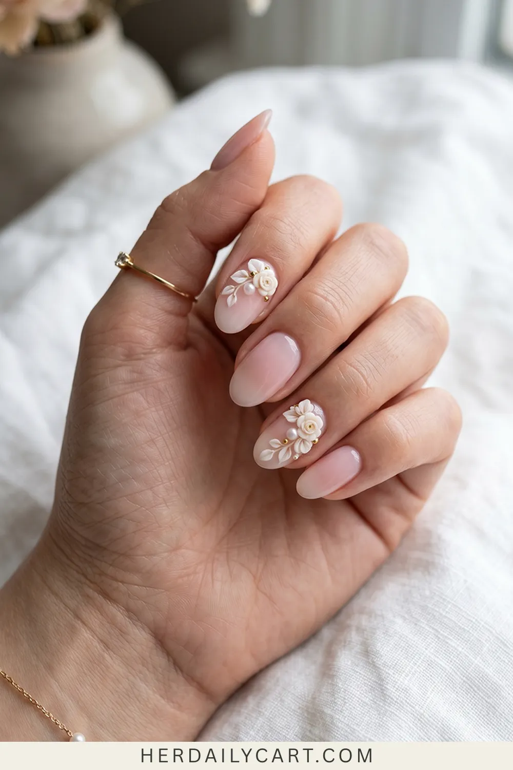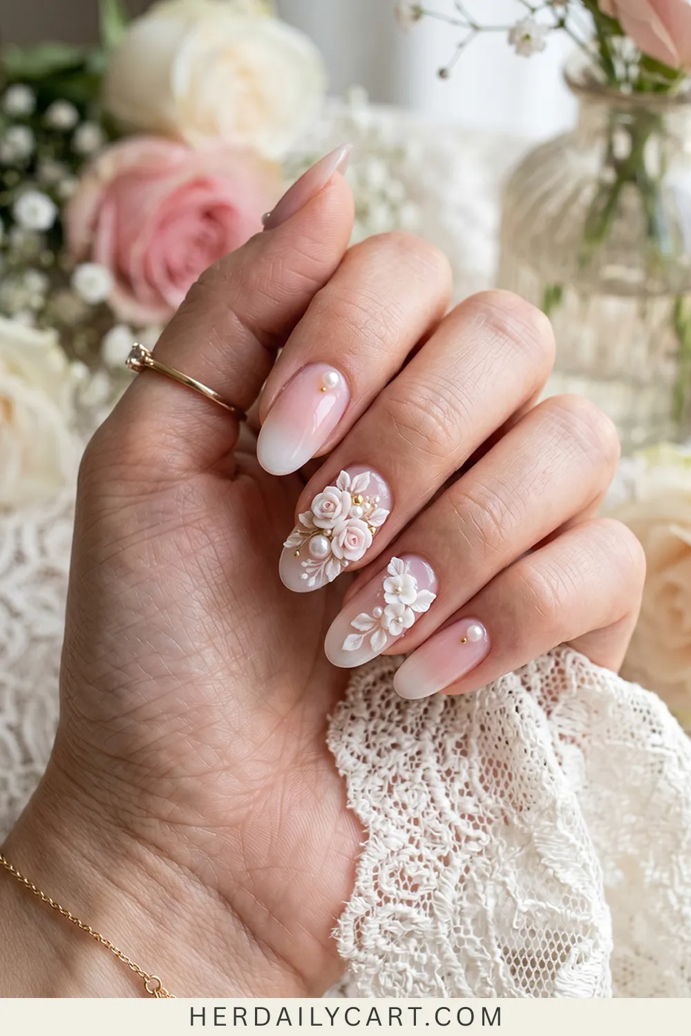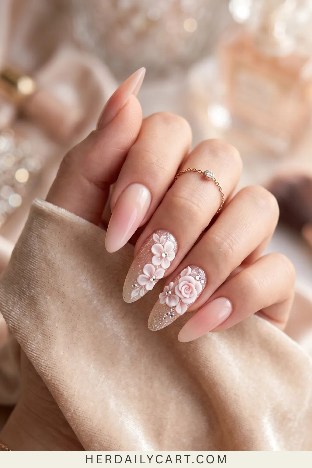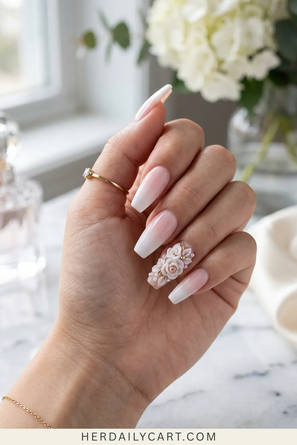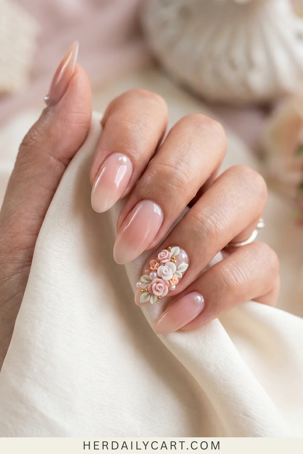 1. 3D Floral Accent Nails for a Soft Romantic Look
