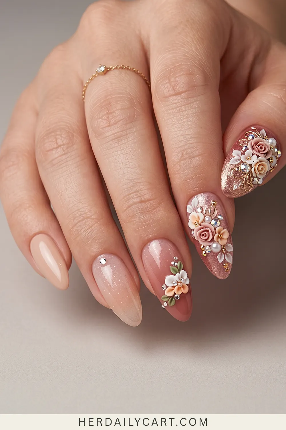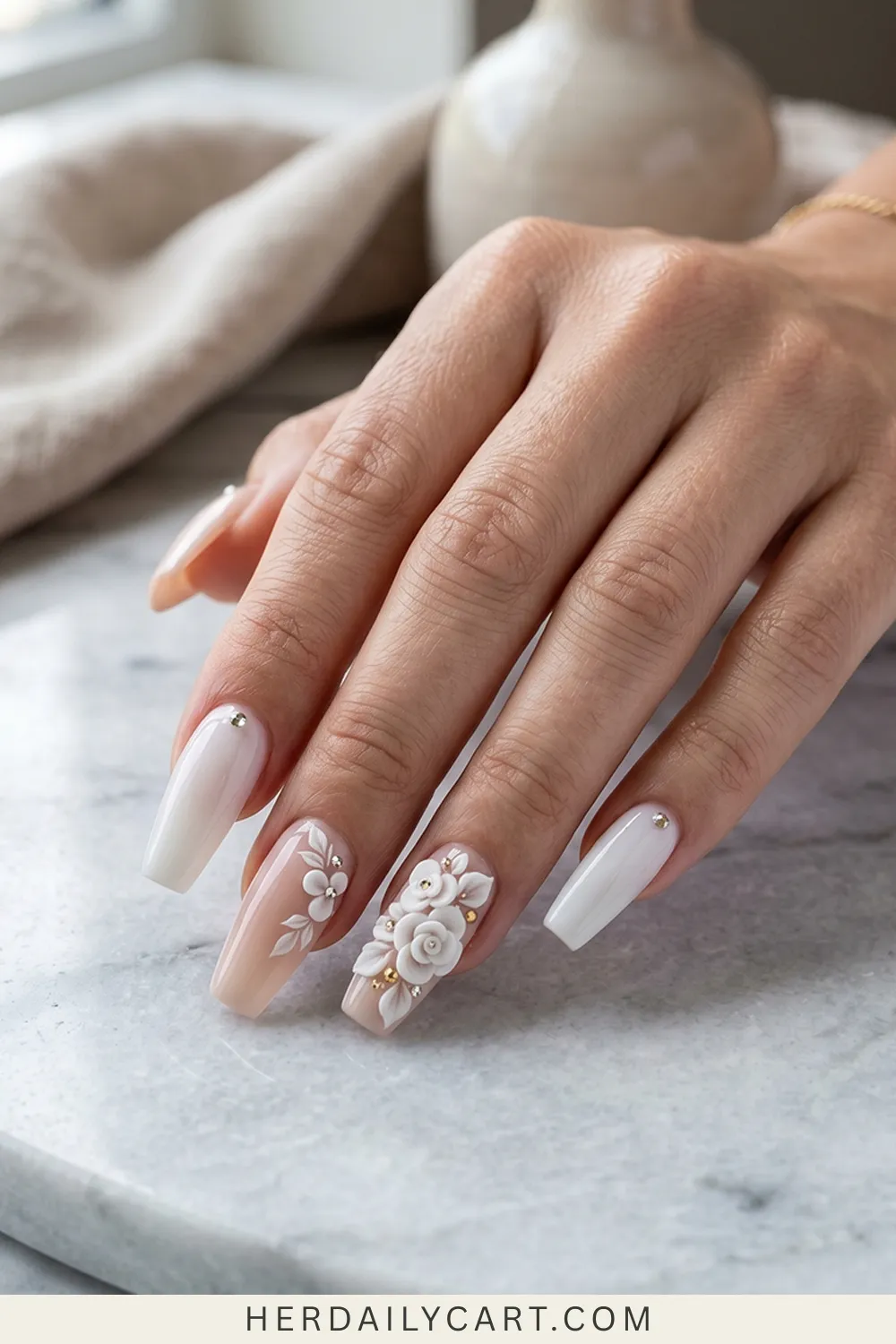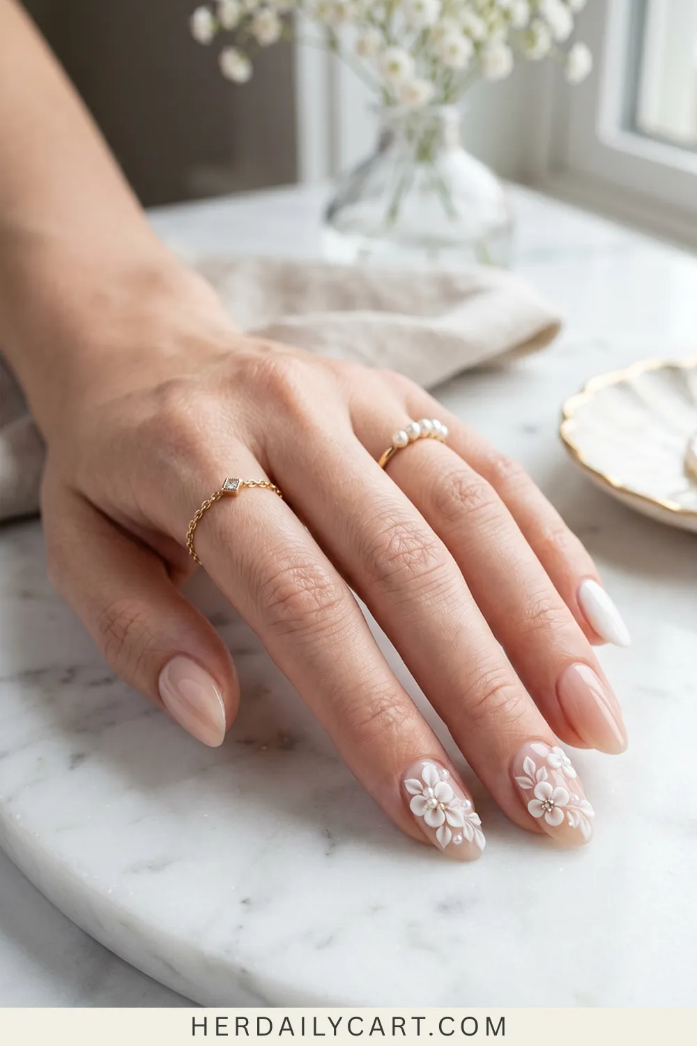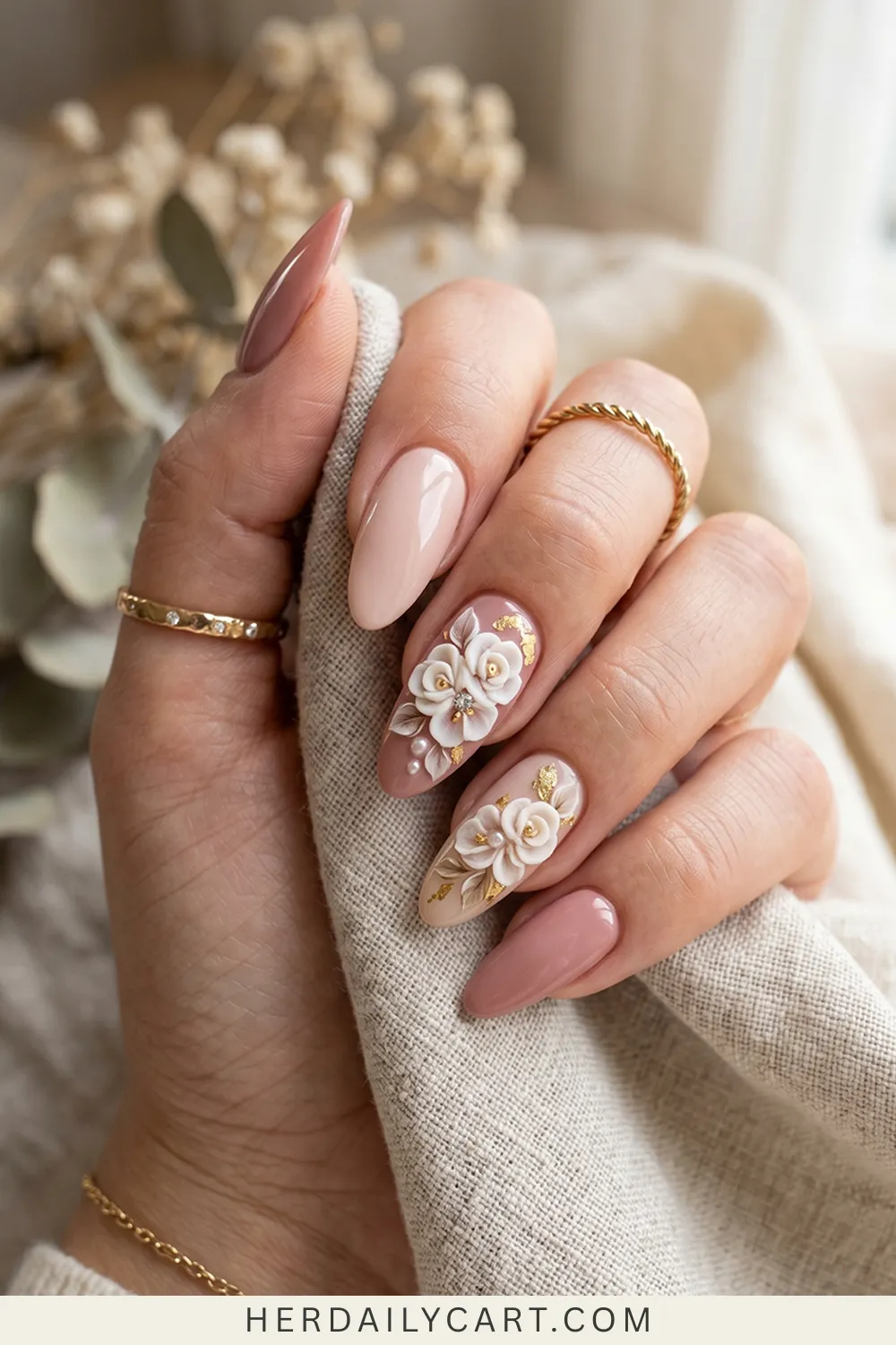 1. 3D Floral Accent Nails for a Soft Romantic Look