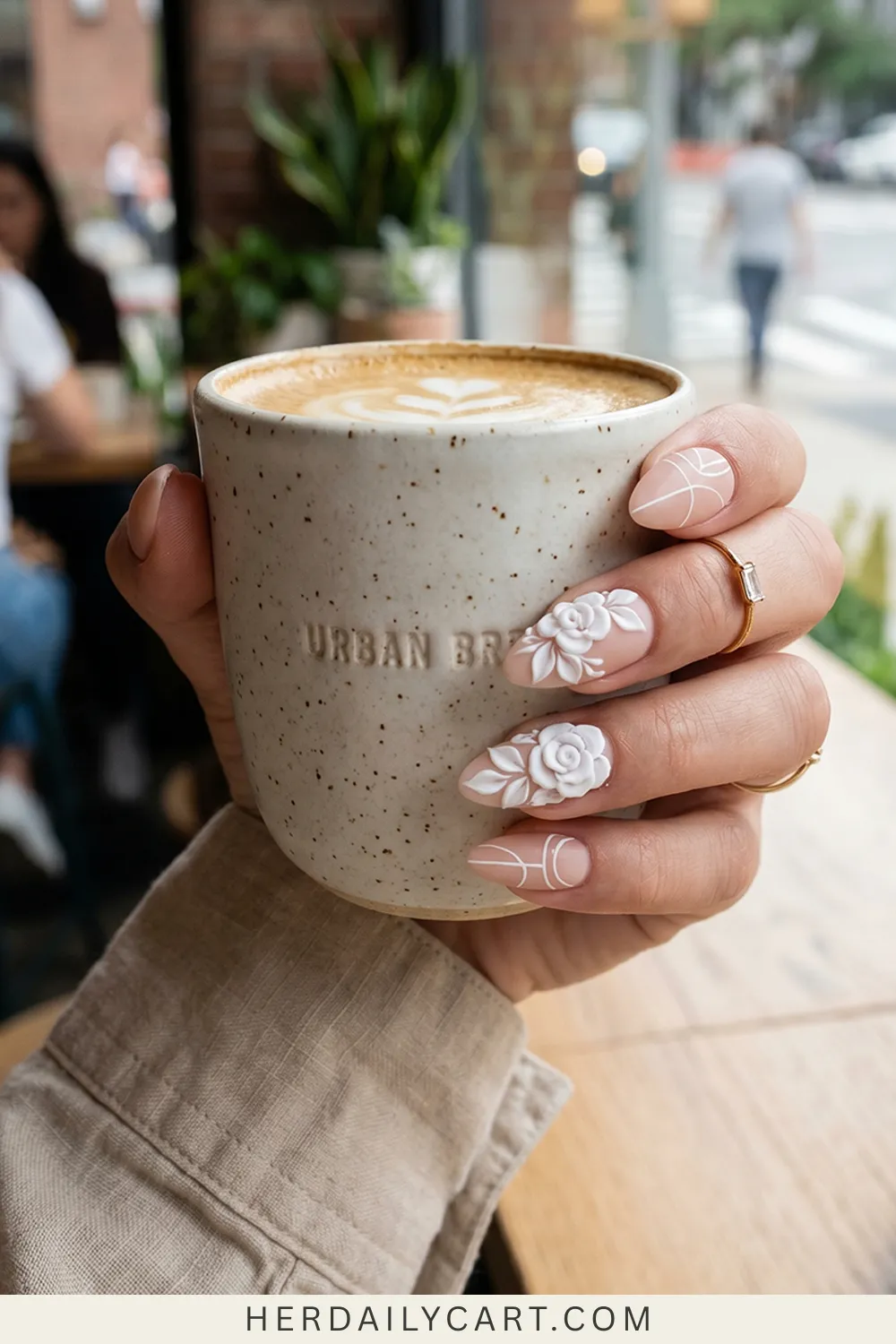 4. Chic 3D Floral Nails That Feel Fresh and Feminine